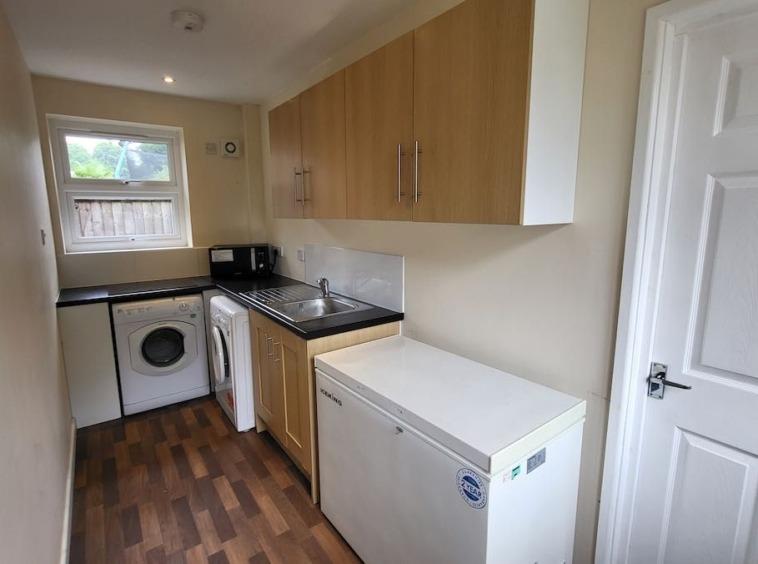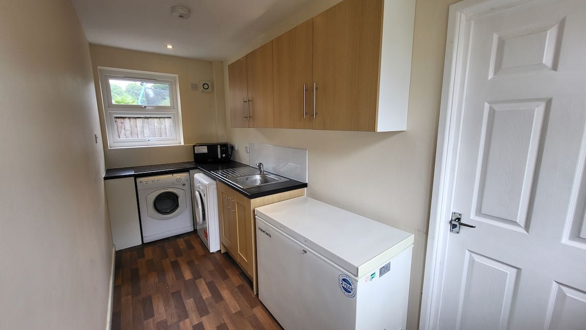 Second Kitchen/Utility Room: Includes induction hob, chest freezer, washing machine, and tumble dryer.